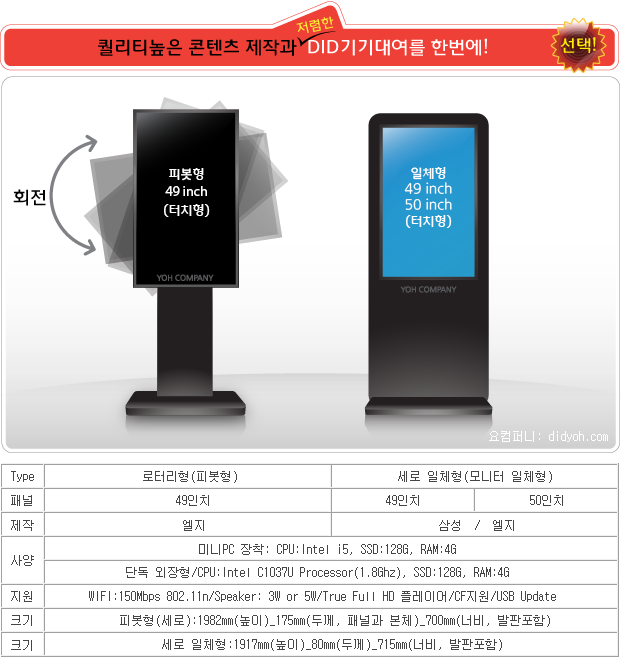 ●[B형] 터치 49인치 DID기기 회전형(피봇형)●