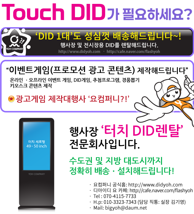 프로모션 이벤트게임, 터치스크린게임, DID게임, 플레시게임, 어린이교육게임, 키오스크콘텐츠, DID렌탈